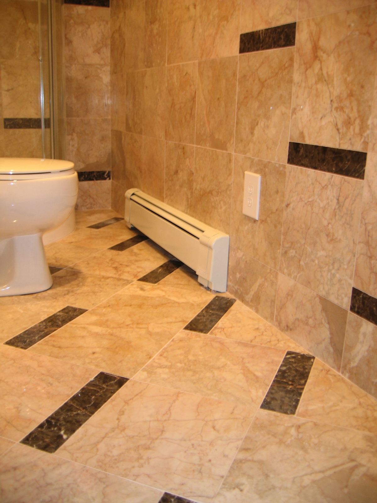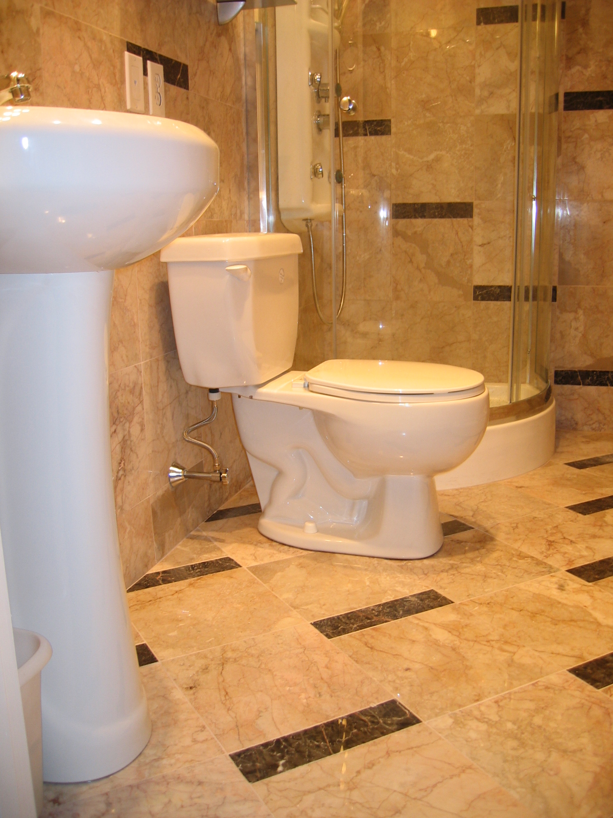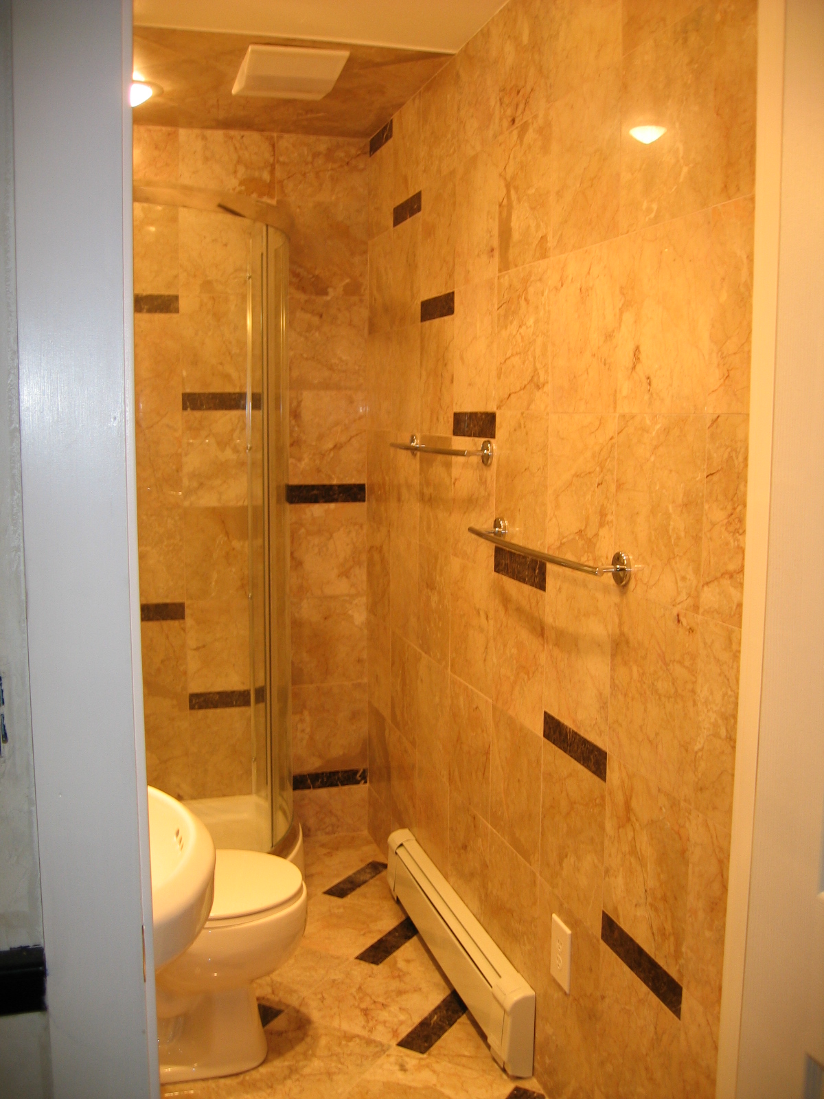 Half to full bathroom conversion. Marble tile installation. Check Before and After.