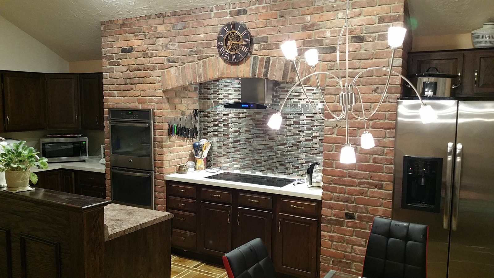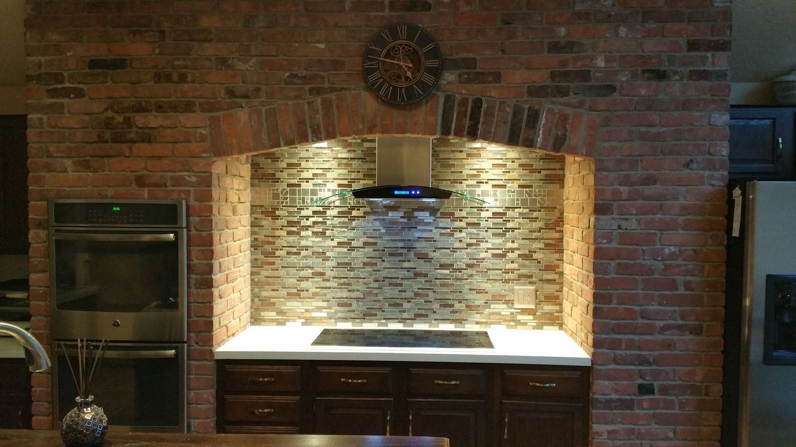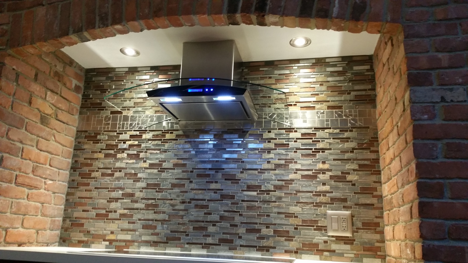Kitchen Backsplash / Kitchen / By Kon Tile replacement, new light and range hood. Check Before and After.