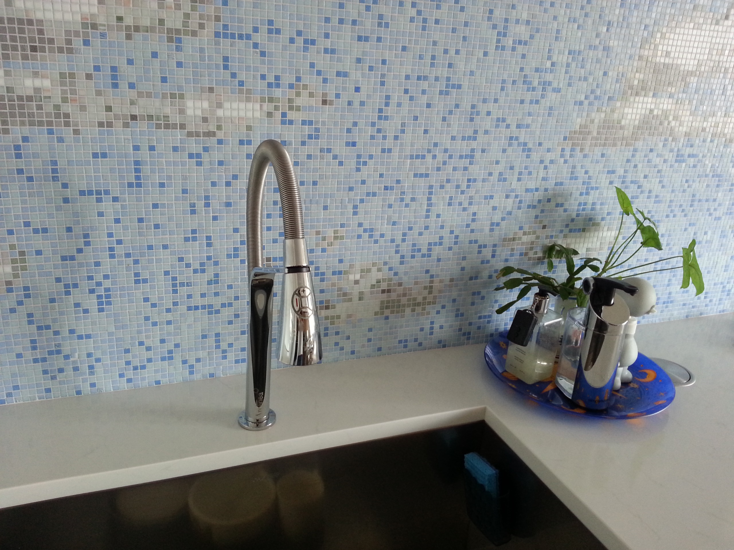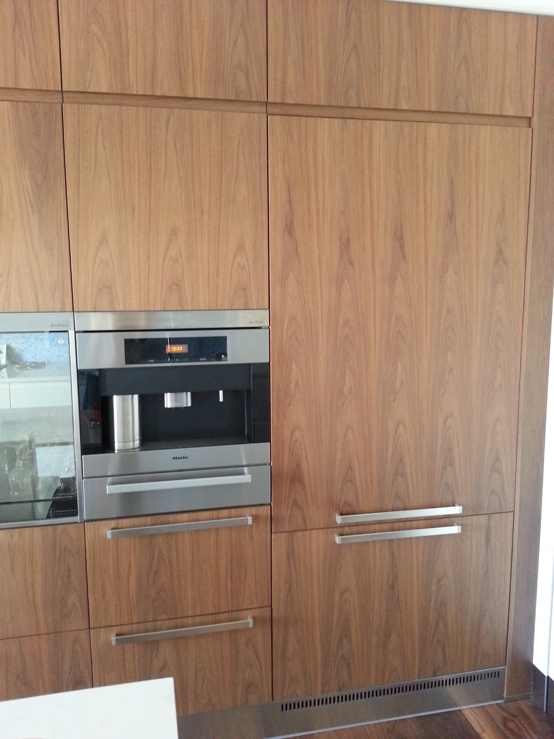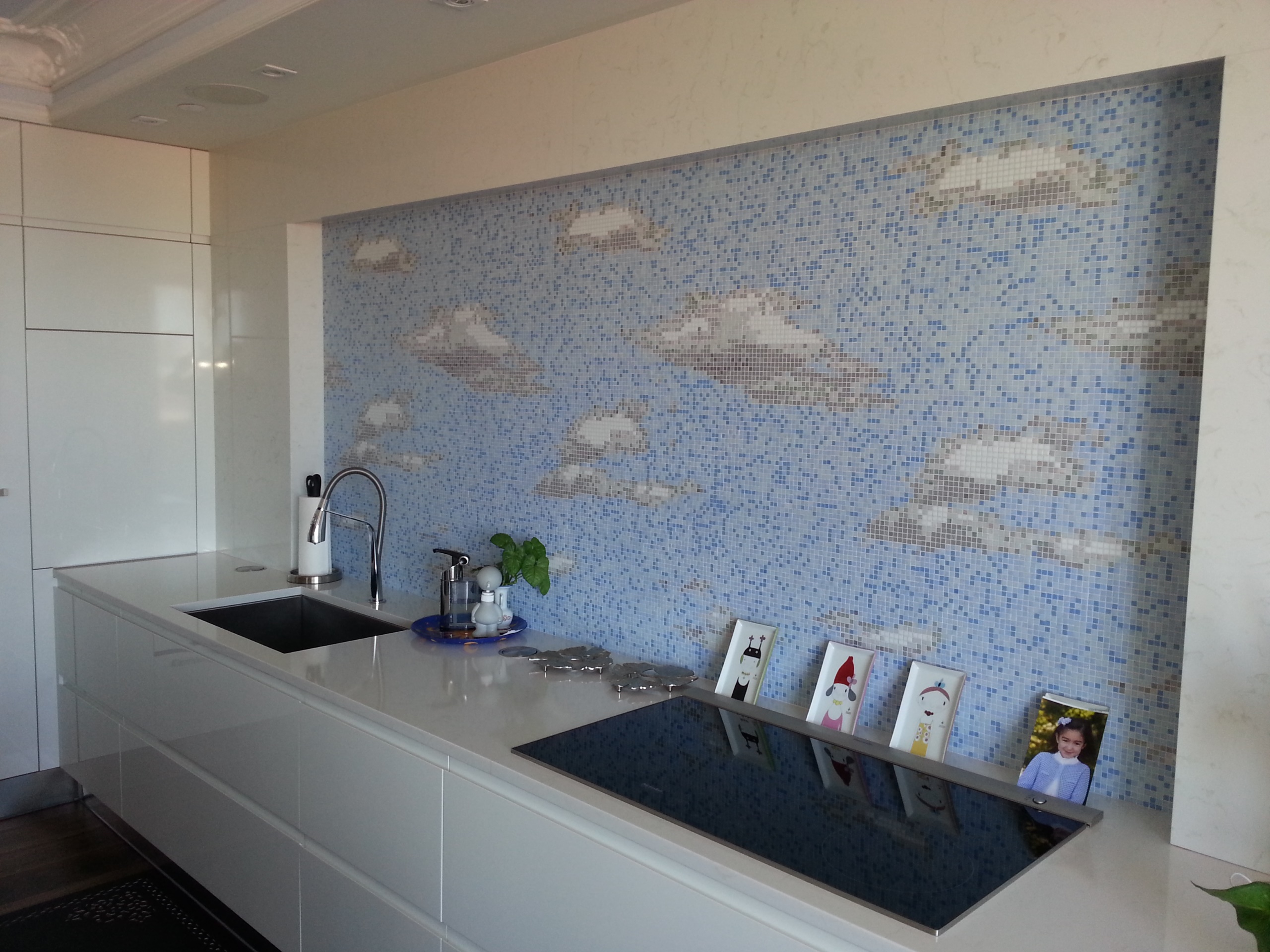 Building a new contemporary kitchen with Tall cabinets and mosaic backsplash.