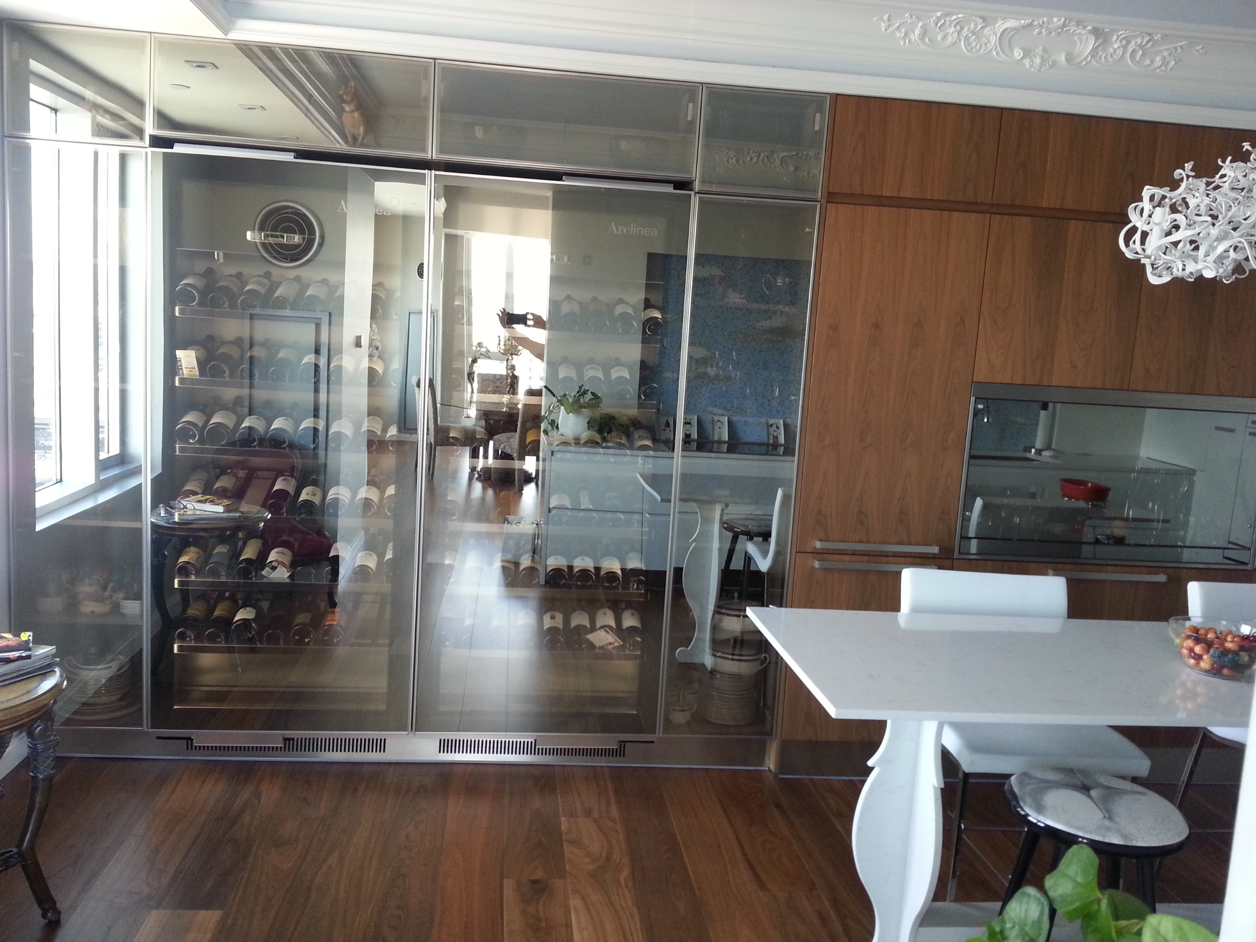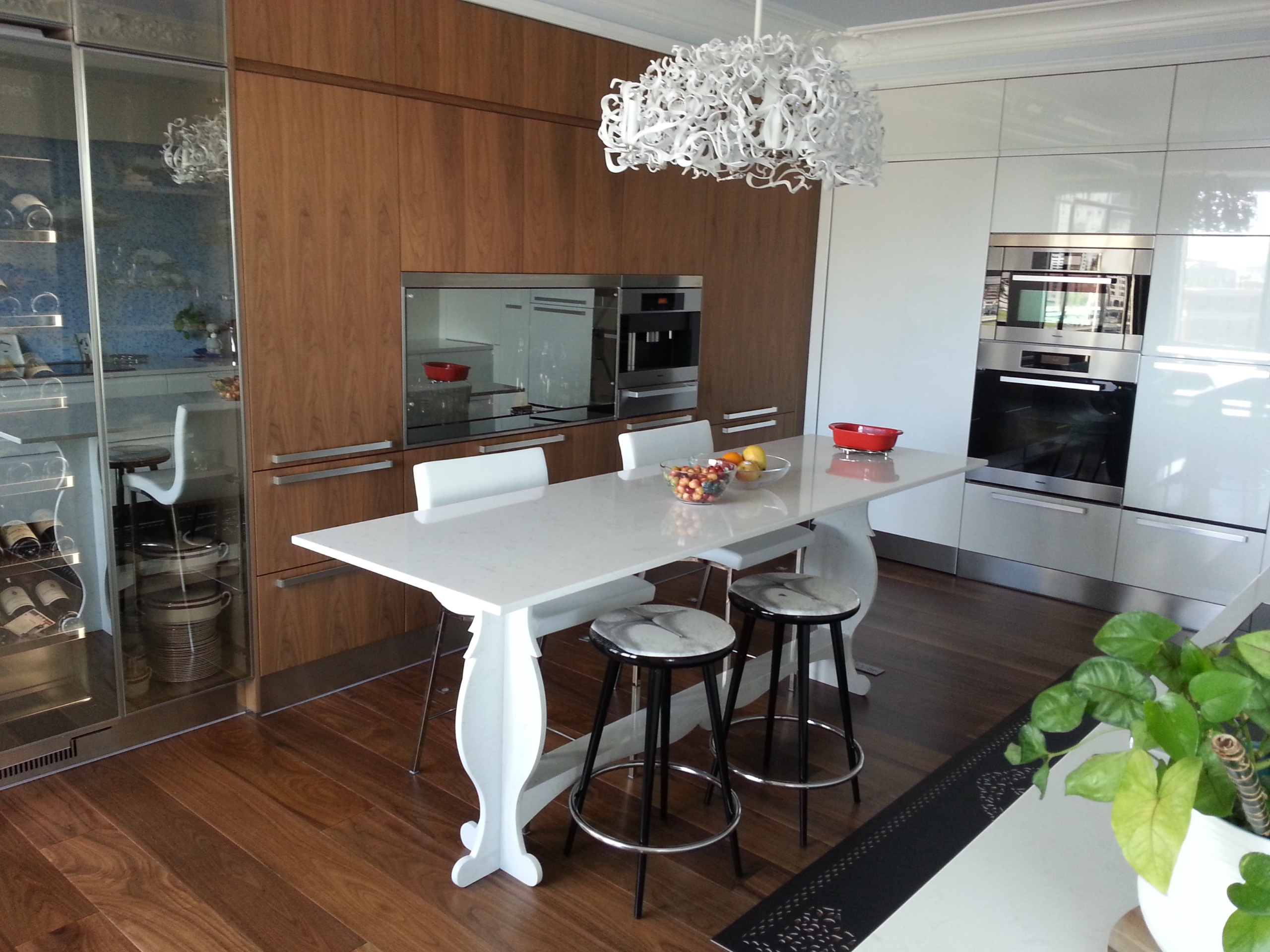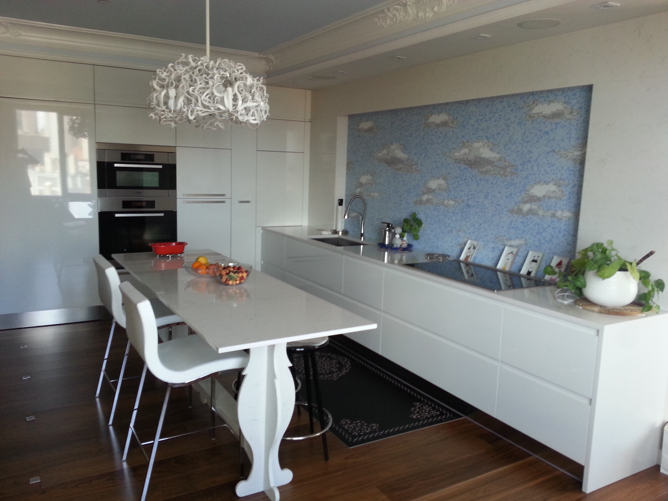 Building a new contemporary kitchen with Tall cabinets and mosaic backsplash.